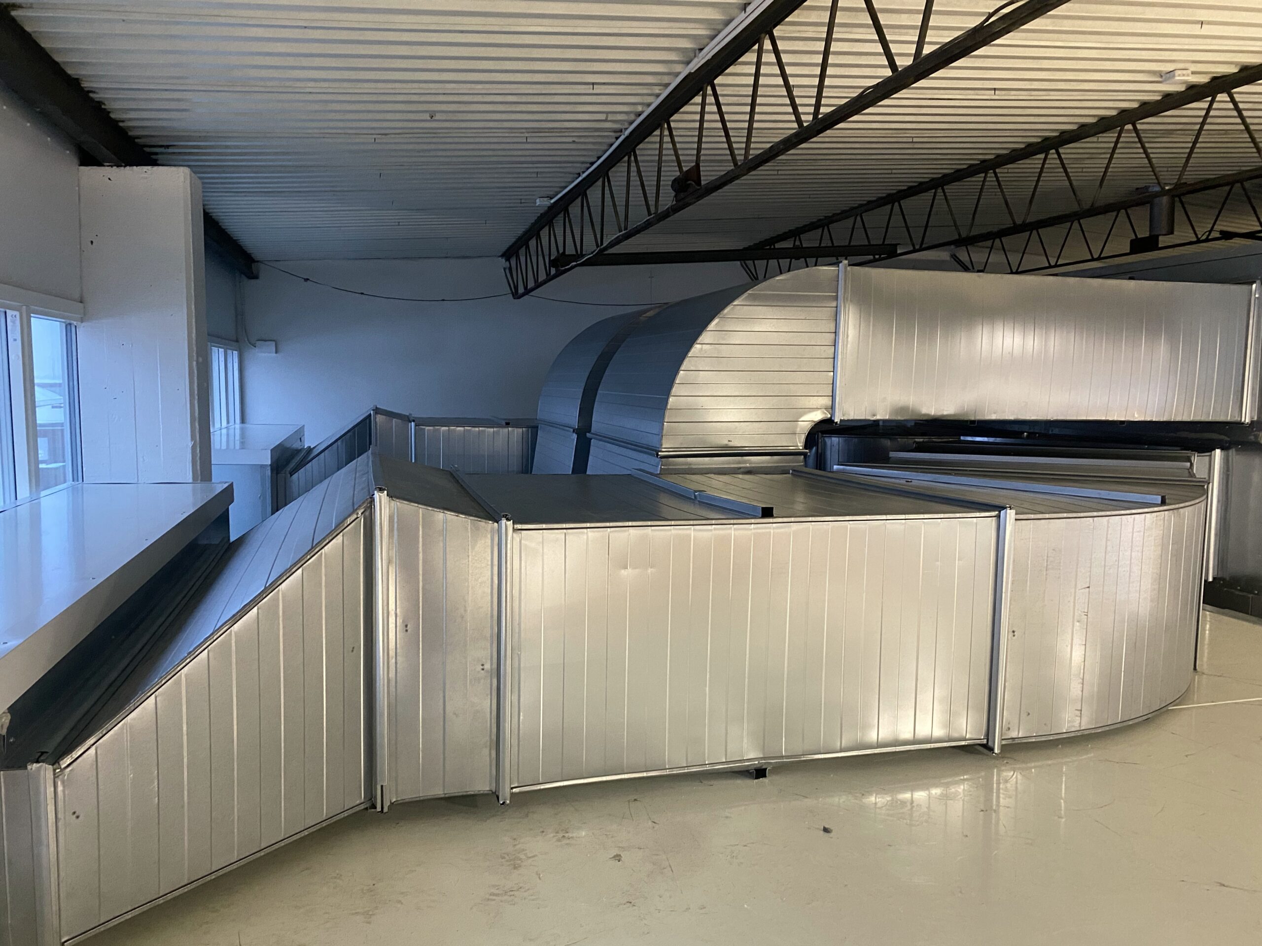 Avgränsade områden för lackering, utrustade med draperier för att begränsa överstänk och förbättra ventilationseffektiviteten